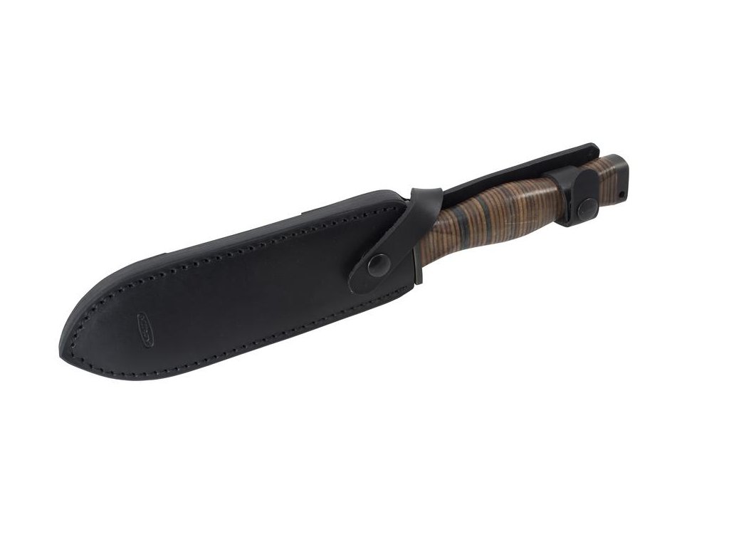 Nůž FALCO je dodáván s černou koženou pochvou.
