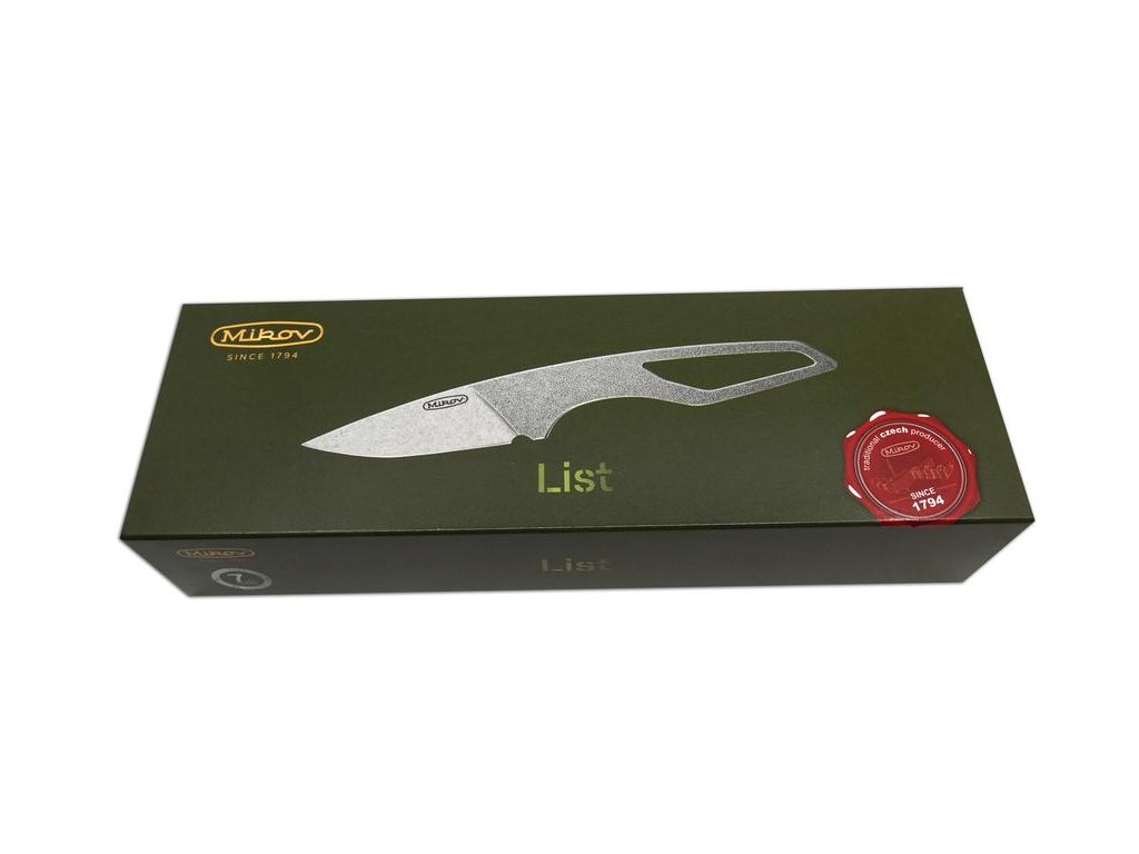 Elegantní nůž LIST je nůž firmy Mikov, která sídlí v srdci Českého Švýcarska ve městě Mikulášovice. Elegantní nůž LIST je pro každý den, na který se můžete spolehnout v jakékoli situaci. Charakterizují ho ladné linky a neotřelý design. Pro svou praktičnost, kompaktní rozměry a elegantní vzhled najde využití jak ve městě, tak i při toulkách divočinou. Kombinace samosvorného pouzdra a paracordu nabízí celou řadu variant nošení. Díky nízké váze nože, pouhých 65 g, o něm téměř nebudete vědět. K noži LIST lze dokoupit příslušenství dle naší nabídky. Příkladem využití může být táboření, krájení potravin, využití v přírodě, využití ve městě.
