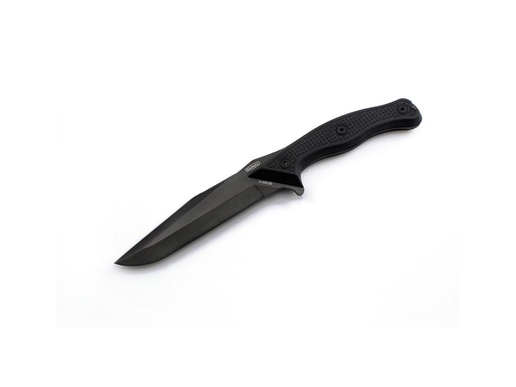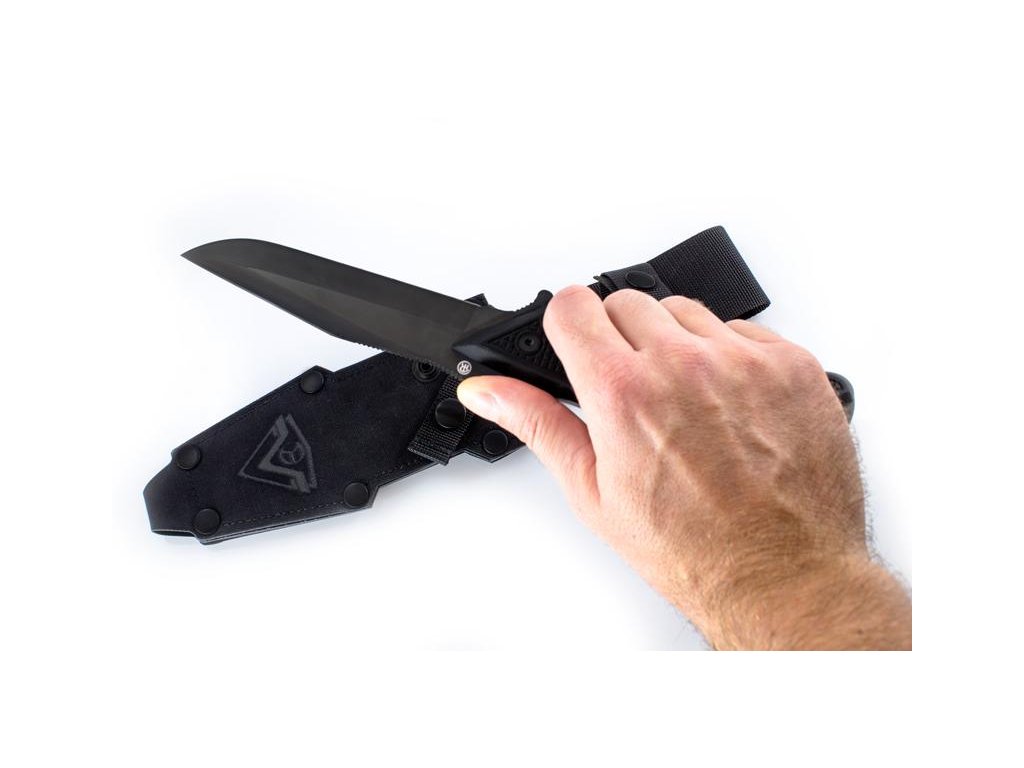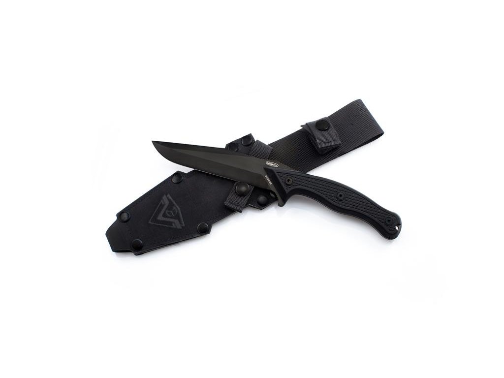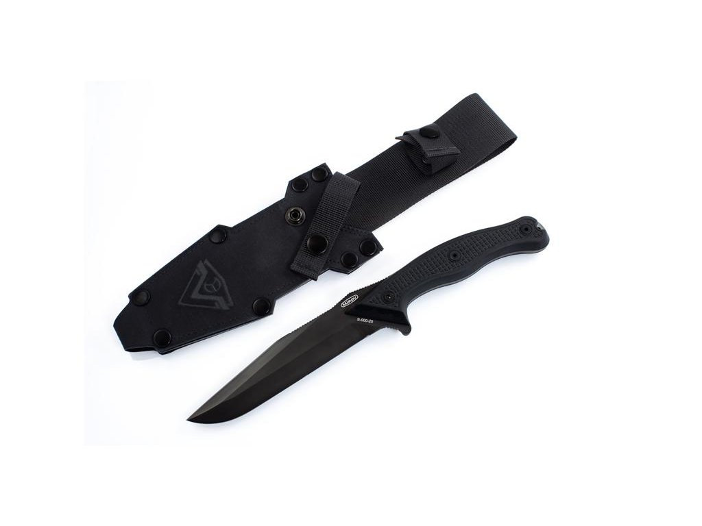 | Popis EN: | With its construction, the STORM knife is a kind of integral combat knives. <br> The knife blade is equipped with a double-sided blade. The lower blade with a length of 142 mm with a raised tip is the same as with the UTON knife. <br> The upper blade is divided into two parts. The front descending in the length of 74 mm is connected to the raised tip, which strengthens and increases its physical abilities. <br> The 54 mm rear false blade serves as a thumb rest and is protected towards the guard on the back of the handle. <br> The lower guard is designed to serve as a support for the index finger <br> The knife handle is barrel-type with attachments made of black G-10 material. Ergonomics is designed to fit all grips, regardless of hand size. <br> A slightly black metal part protrudes in the back pocket of the base to prevent damage to the handle when hitting. There is a 4 mm gap for the safety cord in the socket. <br> Roughening on attachments is based on the UTON knife and is proven by machining. The attachments are fastened with three M4 Allen screws with a DLC finish. <br> <br> Each knife is provided with marks of the makers, manufacturers, serial number and year of manufacture. Marking will be done by embossing or laser. <br> The textile case consists of two parts - a modular sheath and a detachable hanger. The construction of the case allows attachment in several ways to the belt and to the cross ties. <br> The knife sheath is made of laminated non-flammable cordura 500, black. <br> The straps are then made of abrasion and tear resistant polyamide. The sleeve emblem of the unit used in 1990-1991 is engraved on the front of the case |