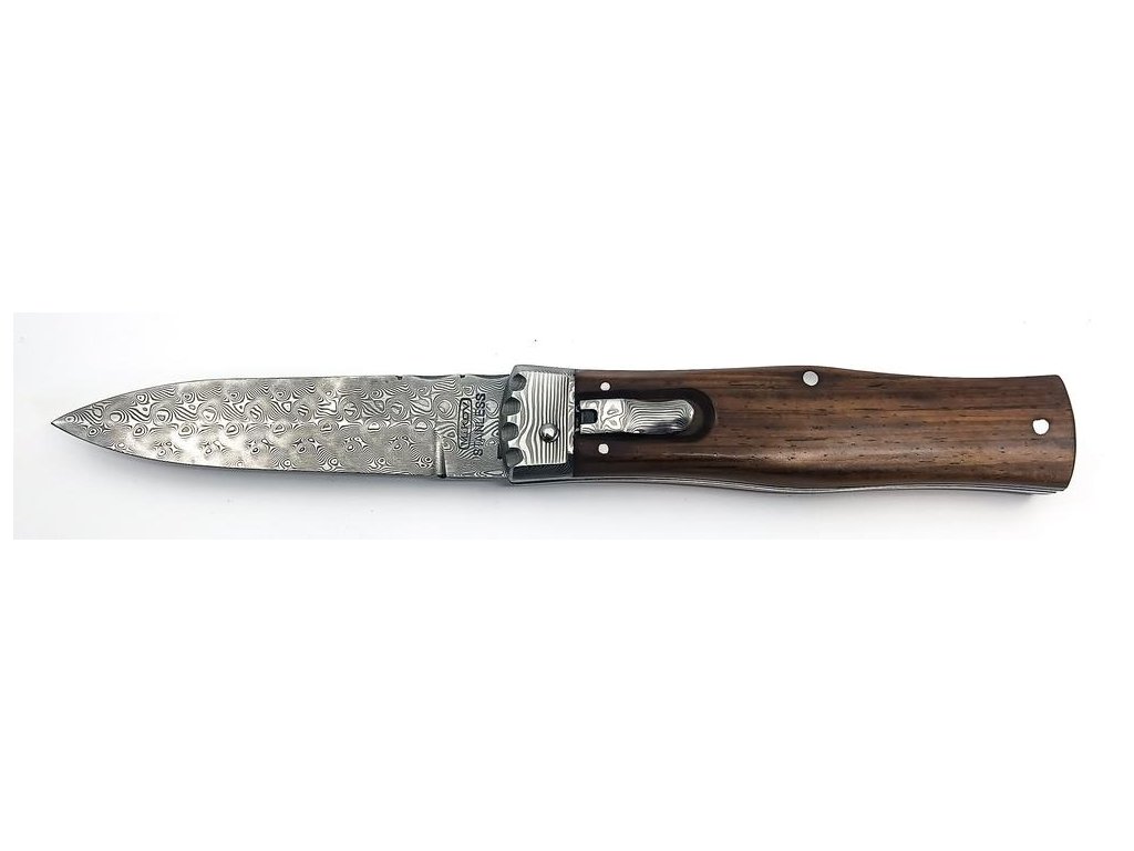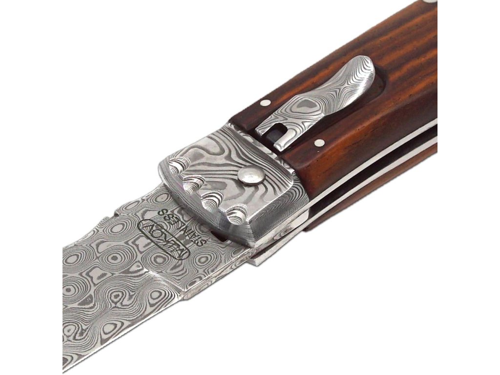 Nůž JAGUAR je vyhazovací, automatický nůž firmy Mikov, která sídlí v srdci Českého Švýcarska ve městě Mikulášovice. Jednou z mnoha výhod JAGUARU je, že se nůž dá rychle otevřít jednou rukou. Čepel nože je vyrobena z vysoce kvalitní damascenské oceli PMC27, která je nejvíce ceněným materiálem na výrobu čepelí. Na světě neexistují dva kusy se stejnou strukturou. V damascenské nerezové oceli PMC27 je spojena houževnatost oceli PMC27 (matný vzor) s tvrdostí oceli RWL34 (lesklý povrch). Výsledný materiál má díky vnitřní struktuře vysokou torzní, ohybovou i rázovou houževnatost a současně velkou odolnost proti opotřebení. Nůž vyrobený z damašku má vysokou řezivost, je extrémně odolný proti přelomení a má krásnou nezaměnitelnou kresbu. Tvrdost použité čepele je 57-60 HRc. Každá čepel je očíslovaná, takže jednotlivé nože jsou jasně identifikovány. Tato identifikace slouží jednak jako záruka originality, ale také jako bezpečnostní prvek v případě ztráty nebo odcizení. Z damascenské oceli jsou i další součástky – konkrétně přední kování, pojistná páčka. Má zdobené hřbetní pero.