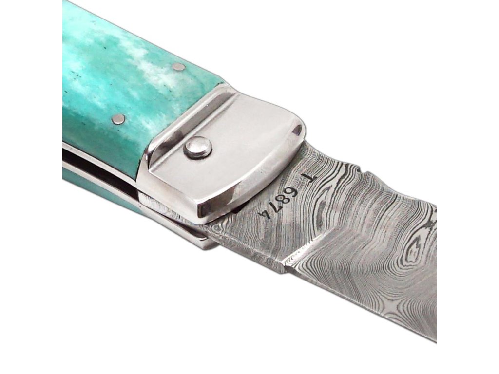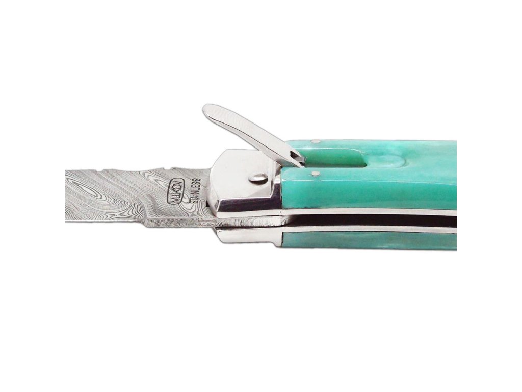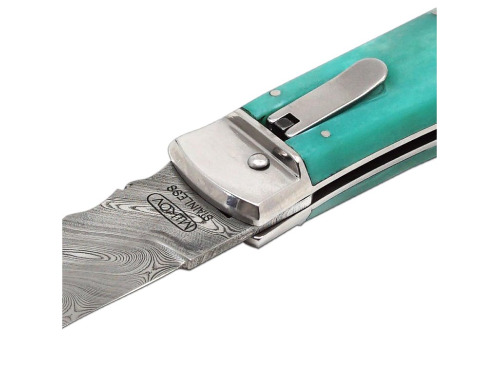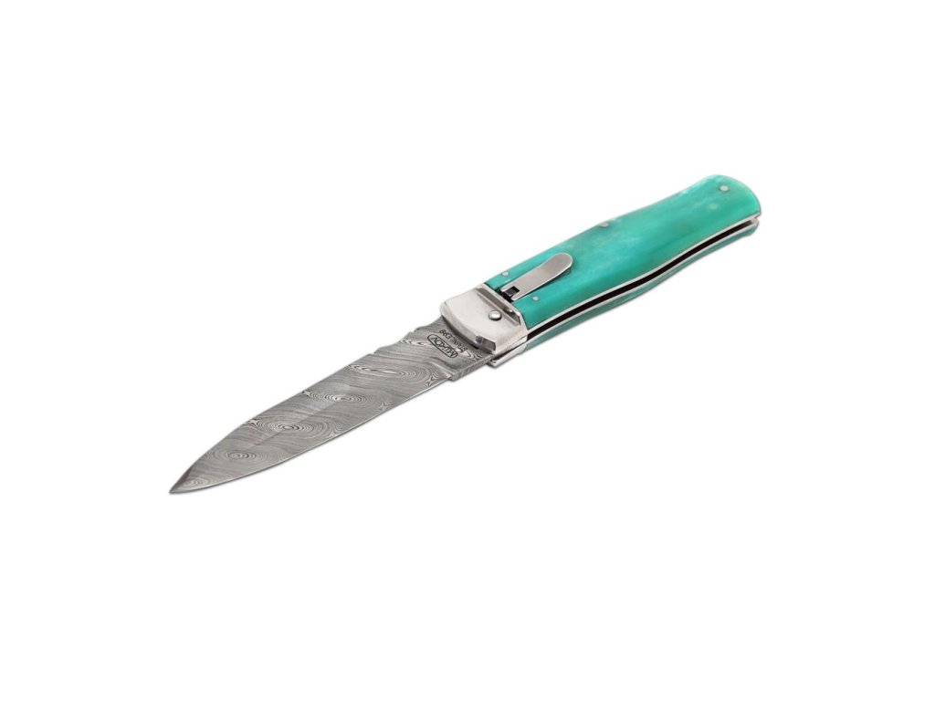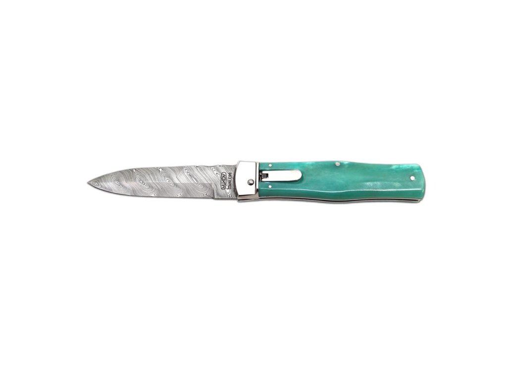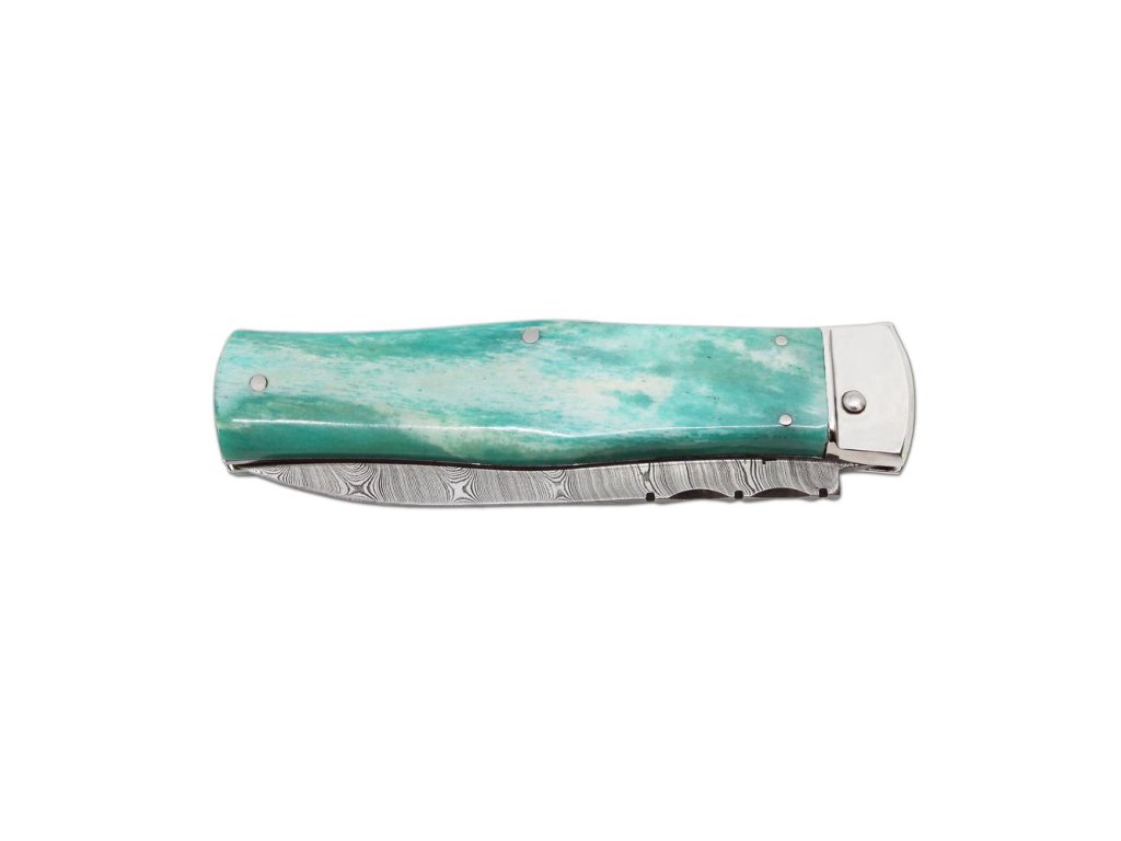 | Popis EN: | Switchblade folding knife 241-DKo-1/KP Green <br><br> Knife PREDATOR is automatic knife of the company Mikov, which is located in the heart of Bohemian Switzerland in the town of Mikulášovice. One of the many advantages of PREDATOR is that the knife can be opened quickly with one hand.<br>The knife blade is made of high quality damask steel PMC27, which is the most valuable material used for the production of blades. There are no two pieces with the same structure in the world. For Damascus stainless steel PMC27, the toughness of PMC27 steel (matt pattern) is combined with the hardness of RWL34 steel (glossy surface). Thanks to the internal structure, the resulting material has high torsional, bending and impact toughness and at the same time high wear resistance.<br>The knife made of damask has a high cutting ability, is extremely resistant to breakage and has a beautiful, unforgettable design.<br>The hardness of the blade is 57-60 HRc. Each blade is numbered so that the individual knives are clearly identified. This identification serves not only as a guarantee of originality, but also as a security element in case of loss or theft.<br>The knife has a decorated ridge spring and the upper part of the blade.<br>The handle of the knife is made of real camel bone, thanks to which it gets an exotic touch, and thanks to coloring, the knife becomes a unique and original product. Its shape not only guarantees a pleasant and firm grip, but also prevents the hand from slipping and injuries.<br>The knife has a luxurious and elegant design. Upon the customer's request, it is possible to produce a PREDATOR in a left-handed version, and it is also possible to engrave a logo or lettering on the blade.<br>This PREDATOR is manufactured in a one-tool design only and comes with a luxurious leather case with a belt loop.<br><br>The damaged pen can be easily replaced according to the instructions <a href="https://www.mikov.cz/s18968021-navod-na-vymenu-pera-vyhazovaciho-noze?lang=en">HERE</a><br><br> |