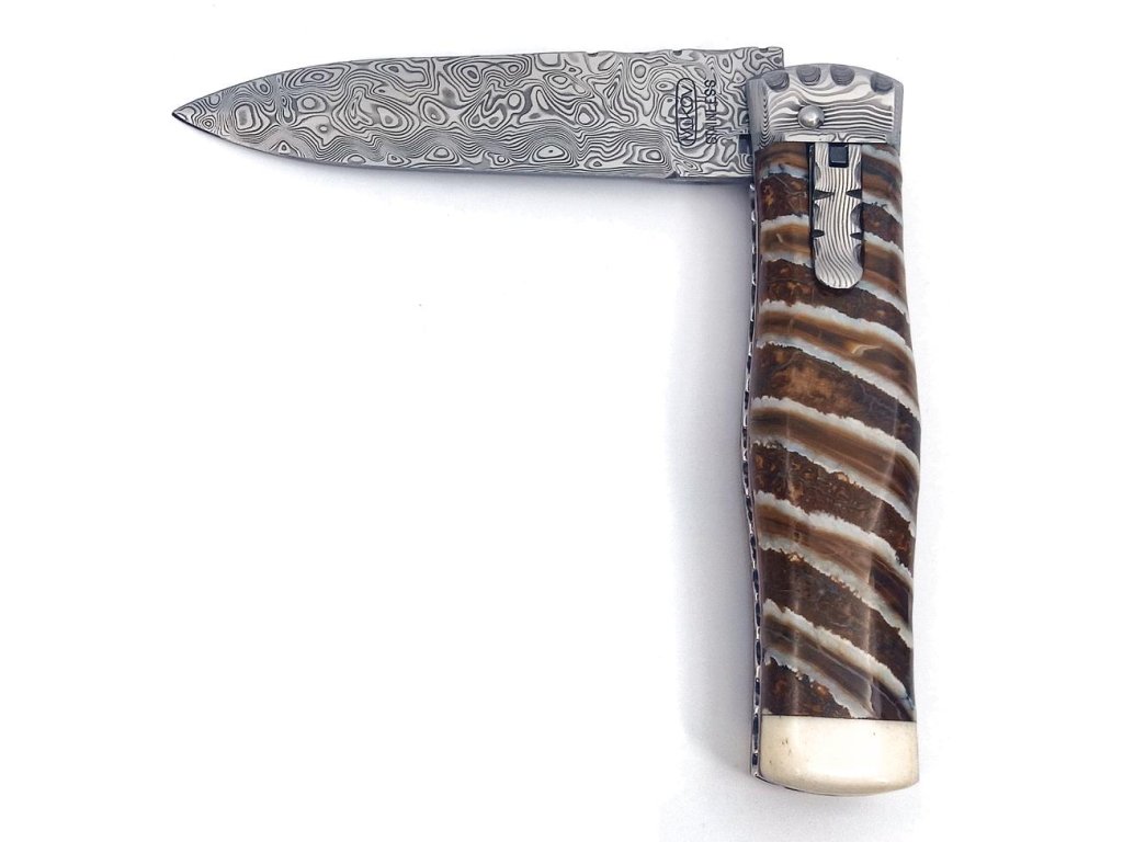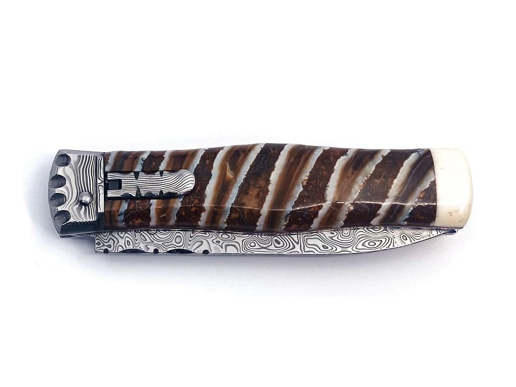 | Popis EN: | Switchblade folding knife 241-DMA-1/PR <br> <br> Knife PREDATOR is automatic knife of the company Mikov, which is located in the heart of Bohemian Switzerland in the town of Mikulášovice. One of the many advantages of PREDATOR is that the knife can be opened quickly with one hand. The knife has a damascus steel PMC27 blade, decorated stainless steel ridge spring, the handle is made of mammoth and has an ergonomic shape that fits perfectly in the hand. The knife handle is made of very rare and delicate material – teeth layers of Woolly mammoth „Mammuthus primigenius“. The layers are stabilized by Epoxy resin. In case of unprofessional manipulation such as twisting, prying, throwing, etc., there is a risk of cracking or scratching the handle. Such damage is not covered by the complaint. PREDATOR knife is supplied with luxurious leather case. The PREDATOR knife can be made in a left-handed variant on request. The material of the knife blade is the best rated material for excellent mechanical abilities and a unique appearance. There are no two pieces with the same structure anywhere in the world. The damascus stainless steel PMC 27 has a great toughness and wear resistance. Thanks to the inner structure, the resulting material has high torsional and bending toughness and at the same time high wear resistance with a hardness of 58 to 62 HRC. Knives made of this steel have a very high cutting abilities, are extremely resistant to breakage and have a beautiful design. Number of functions: 1 <br> <br> Equipment: Blade <br> <br> Material: Blade made of high-quality damask steel PMC 27 with a hardness of 57-60 HRc. <br> Elegant handle made of mammoth. <br> <br> Manufacturer : Mikov Mikulasovice <br> <br>The damaged pen can be easily replaced according to the instructions <a href="https://www.mikov.cz/s18968021-navod-na-vymenu-pera-vyhazovaciho-noze?lang=en">HERE</a><br><br> |