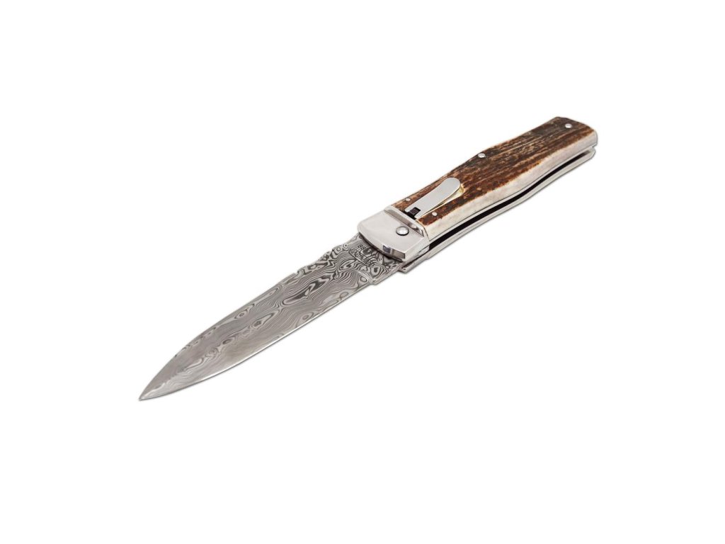 | Popis EN: | Switchblade PREDATOR knife 241-DP-1 / KP<br><br>Knife PREDATOR is automatic knife of the company Mikov, which is located in the heart of Bohemian Switzerland in the town of Mikulášovice. One of the many advantages of PREDATOR is that the knife can be opened quickly with one hand.<br>The knife blade is made of high quality damask steel PMC27, which is the most valuable material for the production of blades. There are no two pieces with the same structure in the world. For Damascus stainless steel PMC27, the toughness of PMC27 steel (matt pattern) is combined with the hardness of RWL34 steel (glossy surface). Thanks to the internal structure, the resulting material has high torsional, bending and impact toughness and at the same time high wear resistance.<br>The knife made of damask has a high cutting ability, is extremely resistant to breakage and has a beautiful, unforgettable design.<br>The hardness of the blade is 57-60 HRc. Each blade is numbered so that the individual knives are clearly identified. This identification serves not only as a guarantee of originality, but also as a security element in case of loss or theft. The knife has a decorated ridge spring and the upper part of the blade.<br>The handle of the knife is made of real deer antler, which is very popular among hunters and nature lovers. Its shape not only guarantees a pleasant and firm grip, but also prevents the hand from slipping and injuries.<br>The knife has a luxurious and elegant design. Upon the customer's request, it is possible to produce a PREDATOR in a left-handed version, and it is also possible to engrave a logo or lettering on the blade.<br>This PREDATOR is manufactured in a one-tool design only and comes with a luxurious leather case with a belt loop. <br> <br> Number of functions: 1 <br> <br> Equipment: <br> Blade <br> <br> Material : <br> blade made of high quality damascus steel PMC27 with a hardness of 57-60 HRc <br>elegant handle of genuine deer antler <br> <br> Manufacturer: Mikov Mikulášovice <br> <br>The damaged pen can be easily replaced according to the instructions <a href="https://www.mikov.cz/s18968021-navod-na-vymenu-pera-vyhazovaciho-noze?lang=en">HERE</a><br><br> |