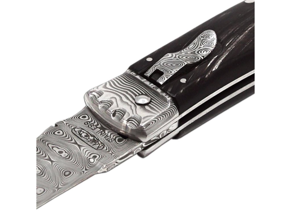 | Popis EN: | Switchblade PREDATOR knife 241-DR-1/PANTHER<br><br>Knife PREDATOR is automatic knife of the company Mikov, which is located in the heart of Bohemian Switzerland in the town of Mikulášovice. One of the many advantages of PREDATOR is that the knife can be opened quickly with one hand.<br>The knife blade is made of high quality damask steel PMC27, which is the most valuable material used for the production of blades. There are no two pieces with the same structure in the world. For Damascus stainless steel PMC27, the toughness of PMC27 steel (matt pattern) is combined with the hardness of RWL34 steel (glossy surface). Thanks to the inner structure, the resulting material has high torsional, bending and impact toughness and at the same time high wear resistance.<br>The knife made of damask has a high cutting ability, is extremely resistant to breakage and has a beautiful, unforgettable design.<br>The hardness of the blade is 57-60 HRc. Each blade is numbered so that the individual knives are clearly identified. This identification serves not only as a guarantee of originality, but also as a security element in case of loss or theft. There are also other components made of Damascus steel - specifically the front fittings, the safety lever. The knife has the decorated ridge spring.<br>The handle of the knife is made of a real buffalo horn, which is known for its interesting pattern. Its shape not only guarantees a pleasant and firm grip, but also prevents the hand from slipping and injuries.<br>The knife looks luxurious and very elegant. Upon the customer's request, it is possible to produce PANTHER in a left-handed version, and it is also possible to engrave a logo or lettering on the blade. Each PANTHER is produced in a one-tool design only and comes with a luxurious leather case with a belt loop. Mikov equips each knife with a certificate, which confirms the originality of the product, the quality of materials and guarantees that the knife is handmade. <br> <br> Number of functions: 1 <br> <br> Equipment: <br> Blade <br> <br> Material: <br>blade made of high-quality Damascus steel PMC27 with a hardness of 57-60 HRc <br> elegant handle of buffalo horn <br> <br> Manufacturer: Mikov Mikulášovice <br> <br>The damaged pen can be easily replaced according to the instructions <a href="https://www.mikov.cz/s18968021-navod-na-vymenu-pera-vyhazovaciho-noze?lang=en">HERE</a><br><br> |