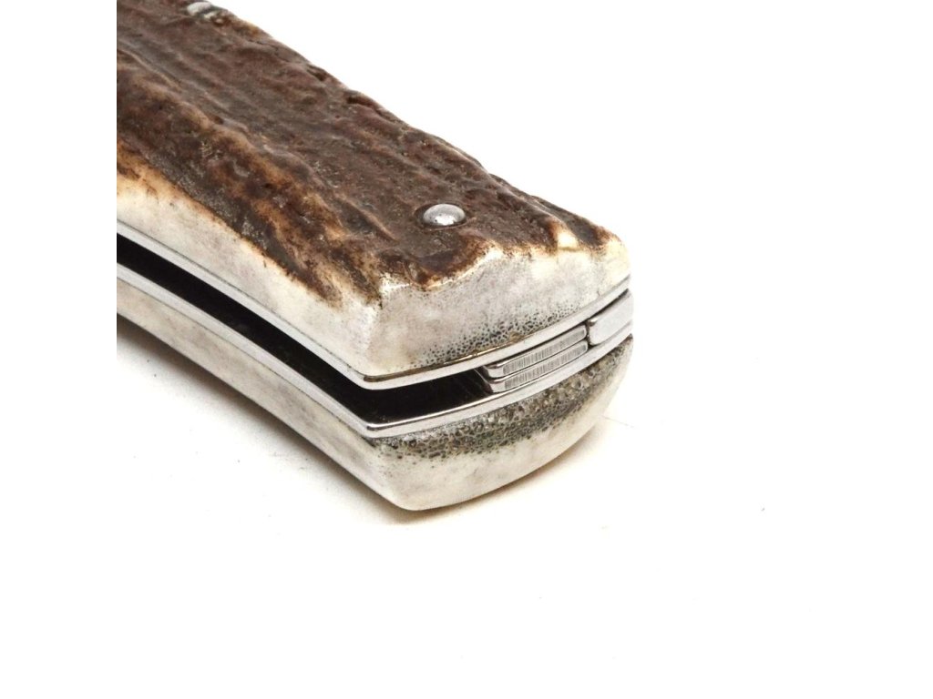 Střenka nože je vyrobena z pravého jeleního parohu, který je velice oblíbený mezi lovci a milovníky přírody. Svým tvarem zaručuje nejen příjemný a pevný úchop, ale zároveň brání sklouznutí ruky a poranění.