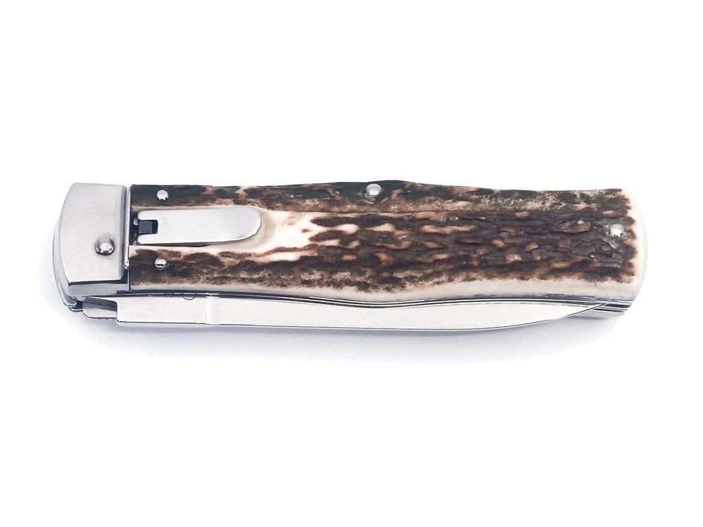 Střenka nože je vyrobena z pravého jeleního parohu, který je velice oblíbený mezi lovci a milovníky přírody. Svým tvarem zaručuje nejen příjemný a pevný úchop, ale zároveň brání sklouznutí ruky a poranění.