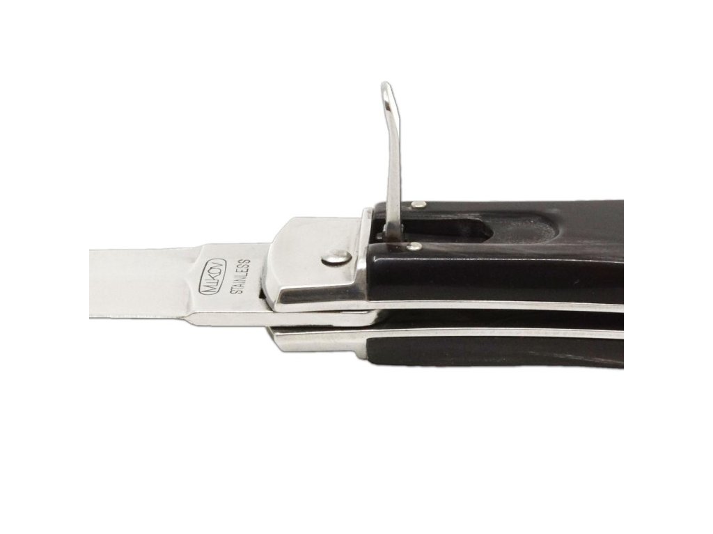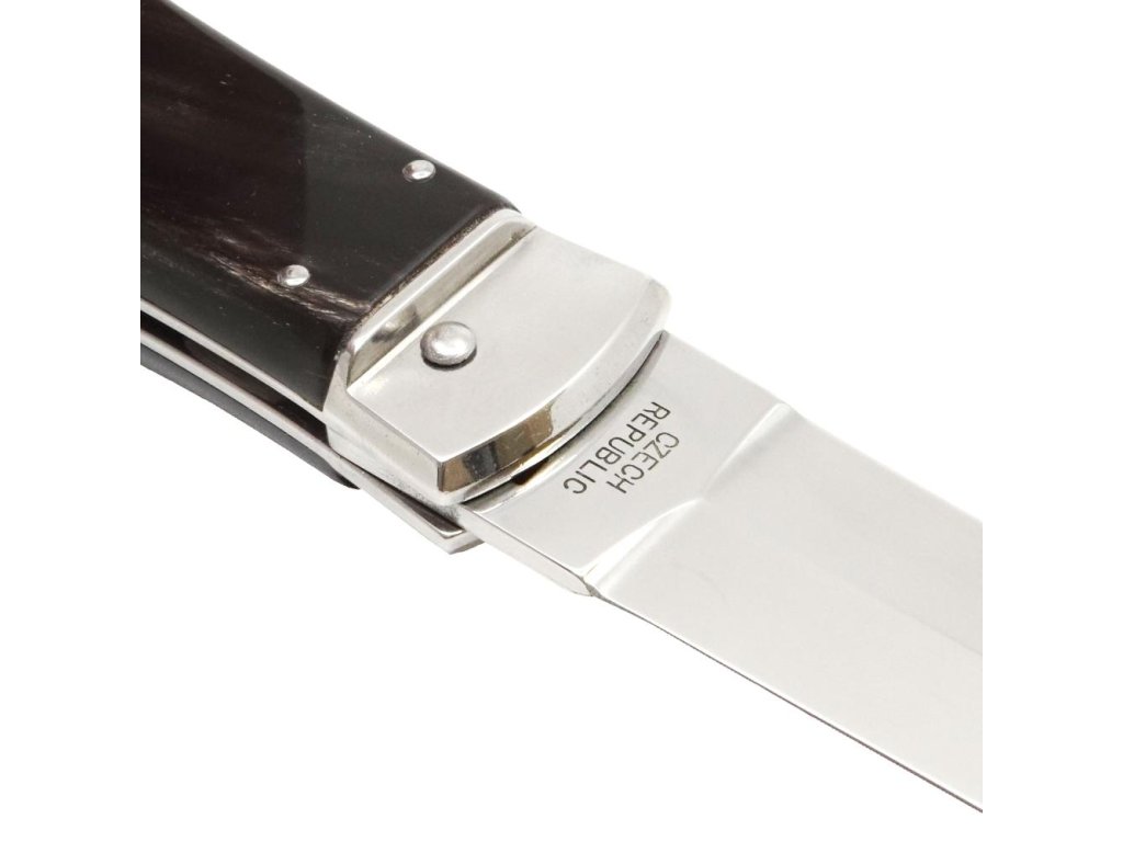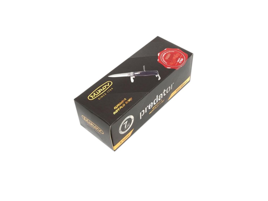 | Popis EN: | Switchblade PREDATOR knife 241-NR-1/KP<br><br>Is Czech made knife with great heritage of Czech knife making. One of the many advantages of PREDATOR is that the knife can be quickly opened with one hand from the side.<br>The knife blade is made of high-quality stainless steel 420 with a hardness of 52–55 HRc.<br>The handle of the knife is made of a buffalo horn which is favorite thanks to its pattern. Its shape not only guarantees a pleasant and firm grip, but also prevents the hand from slipping and injuries.<br>The knife has a luxurious and elegant design. Upon the customer's request, it is possible to produce PREDATOR in a left-handed design (cannot be combined with a corkscrew!) It is also possible to engrave a logo or lettering on the blade.<br>This PREDATOR is delivered including a luxurious leather case with a belt loop.<br>The knife is manufactured with 1-4 tools. For example with the main blade, saw, can opener or bottle opener with screwdriver, corkscrew and groove for easy stripping of cables.<br> <br> Number of functions: 1 <br> <br> Equipment: <br> Blade <br> <br> Material : <br> blade made of high quality stainless steel 420 with a hardness of 52-55 HRc <br> Handle from buffalo horn<br> <br> Manufacturer: Mikov Mikulášovice <br> <br>The damaged pen can be easily replaced according to the instructions <a href="https://www.mikov.cz/s18968021-navod-na-vymenu-pera-vyhazovaciho-noze?lang=en">HERE</a><br><br> |