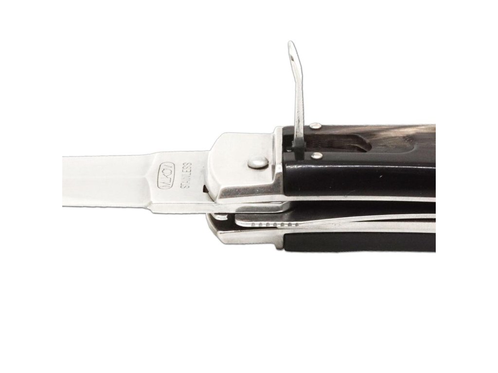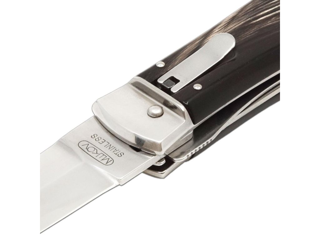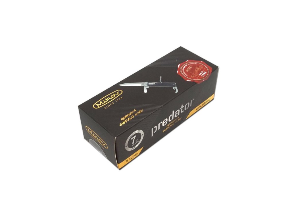 | Popis EN: | Switchblade PREDATOR knife 241-NR-2/KP<br><br>Is Czech made knife with great heritage of Czech knife making. One of the many advantages of PREDATOR is that the knife can be quickly opened with one hand from the side.<br>The knife blade is made of high-quality stainless steel 420 with a hardness of 52–55 HRc.<br>The handle of the knife is made of a buffalo horn which is favorite thanks to its pattern. Its shape not only guarantees a pleasant and firm grip, but also prevents the hand from slipping and injuries.<br>The knife has a luxurious and elegant design. Upon the customer's request, it is possible to produce PREDATOR in a left-handed design (cannot be combined with a corkscrew!) It is also possible to engrave a logo or lettering on the blade.<br>This PREDATOR is delivered including a luxurious leather case with a belt loop.<br>The knife is manufactured with 1-4 tools. For example with the main blade, saw, can opener or bottle opener with screwdriver, corkscrew and groove for easy stripping of cables.<br> <br> Number of functions: 2 <br> <br> Equipment: <br> Blade, saw <br> <br> Material : <br> blade made of high quality stainless steel 420 with a hardness of 52-55 HRc <br> Handle from buffalo horn<br> <br> Manufacturer: Mikov Mikulášovice <br> <br>The damaged pen can be easily replaced according to the instructions <a href="https://www.mikov.cz/s18968021-navod-na-vymenu-pera-vyhazovaciho-noze?lang=en">HERE</a><br><br> |