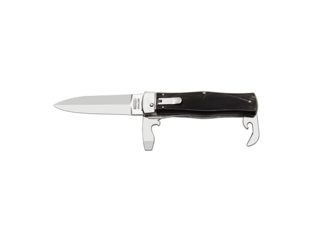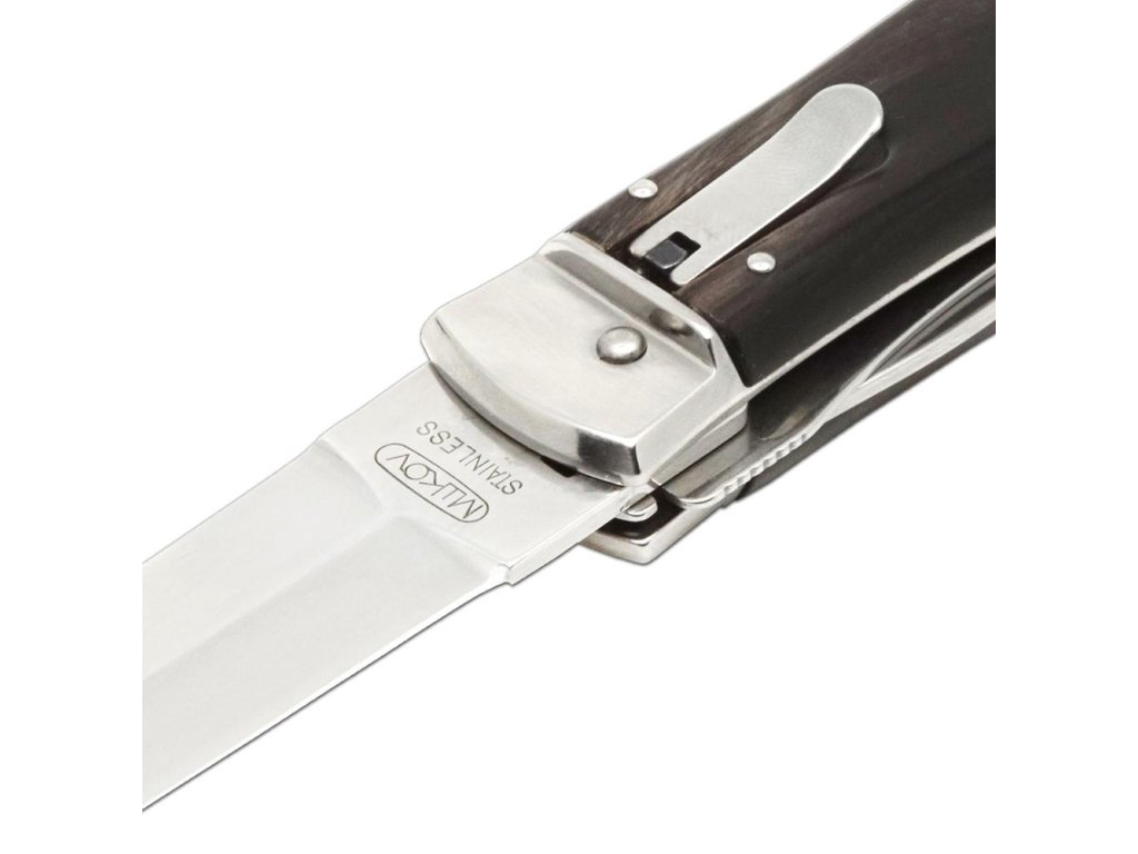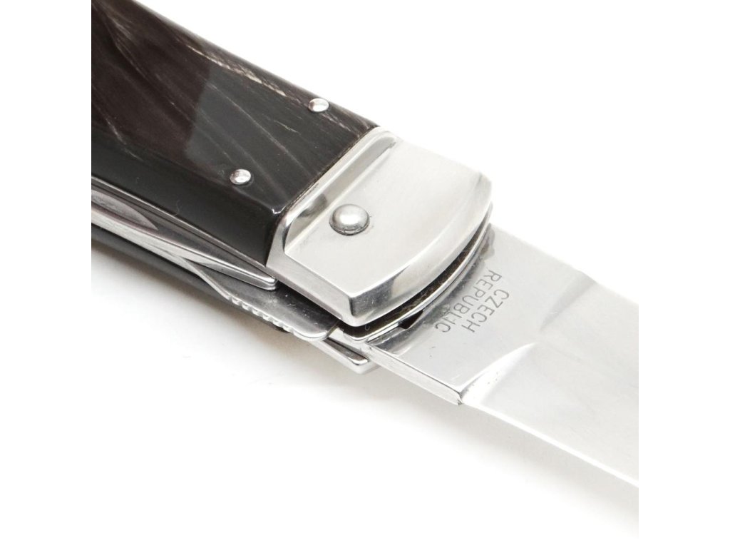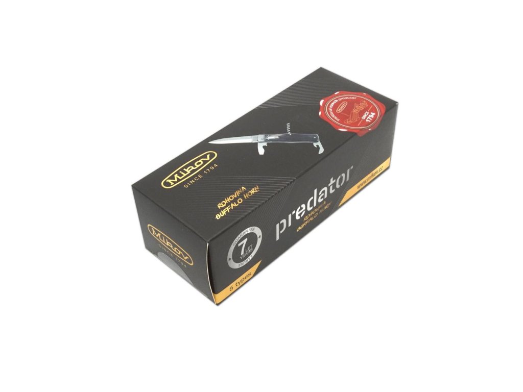 | Popis EN: | Switchblade PREDATOR knife 241-NR-3/KP<br><br>Is Czech made knife with great heritage of Czech knife making. One of the many advantages of PREDATOR is that the knife can be quickly opened with one hand from the side.<br>The knife blade is made of high-quality stainless steel 420 with a hardness of 52–55 HRc.<br>The handle of the knife is made of a buffalo horn which is favorite thanks to its pattern. Its shape not only guarantees a pleasant and firm grip, but also prevents the hand from slipping and injuries.<br>The knife has a luxurious and elegant design. Upon the customer's request, it is possible to produce PREDATOR in a left-handed design (cannot be combined with a corkscrew!) It is also possible to engrave a logo or lettering on the blade.<br>This PREDATOR is delivered including a luxurious leather case with a belt loop.<br>The knife is manufactured with 1-4 tools. For example with the main blade, saw, can opener or bottle opener with screwdriver, corkscrew and groove for easy stripping of cables.<br> <br> Number of functions: 3 <br> <br> Equipment: <br> Blade, bottle opener, can opener <br> <br> Material : <br> blade made of high quality stainless steel 420 with a hardness of 52-55 HRc <br> Handle from buffalo horn <br> <br> Manufacturer: Mikov Mikulášovice <br> <br>The damaged pen can be easily replaced according to the instructions <a href="https://www.mikov.cz/s18968021-navod-na-vymenu-pera-vyhazovaciho-noze?lang=en">HERE</a><br><br> |