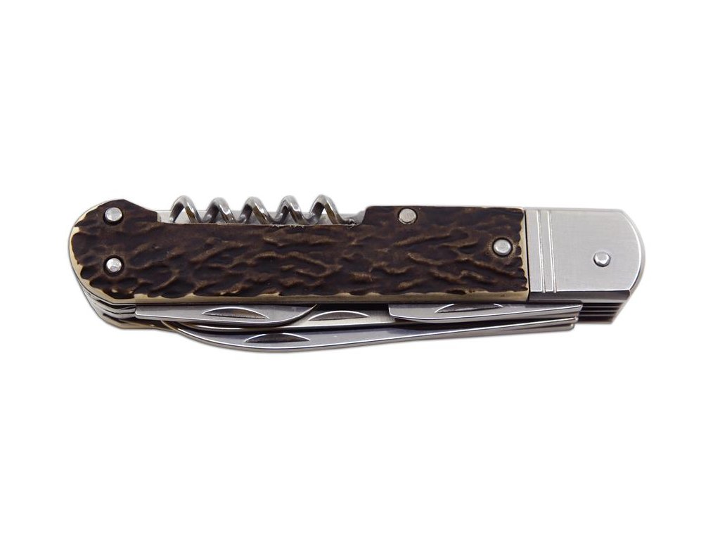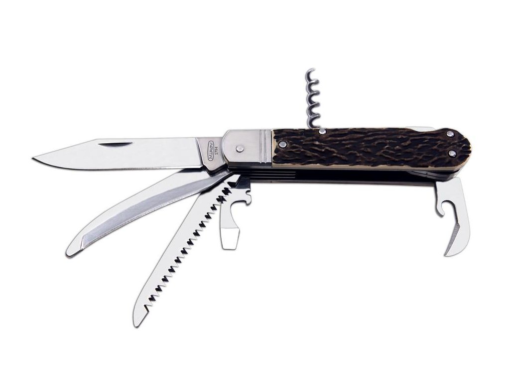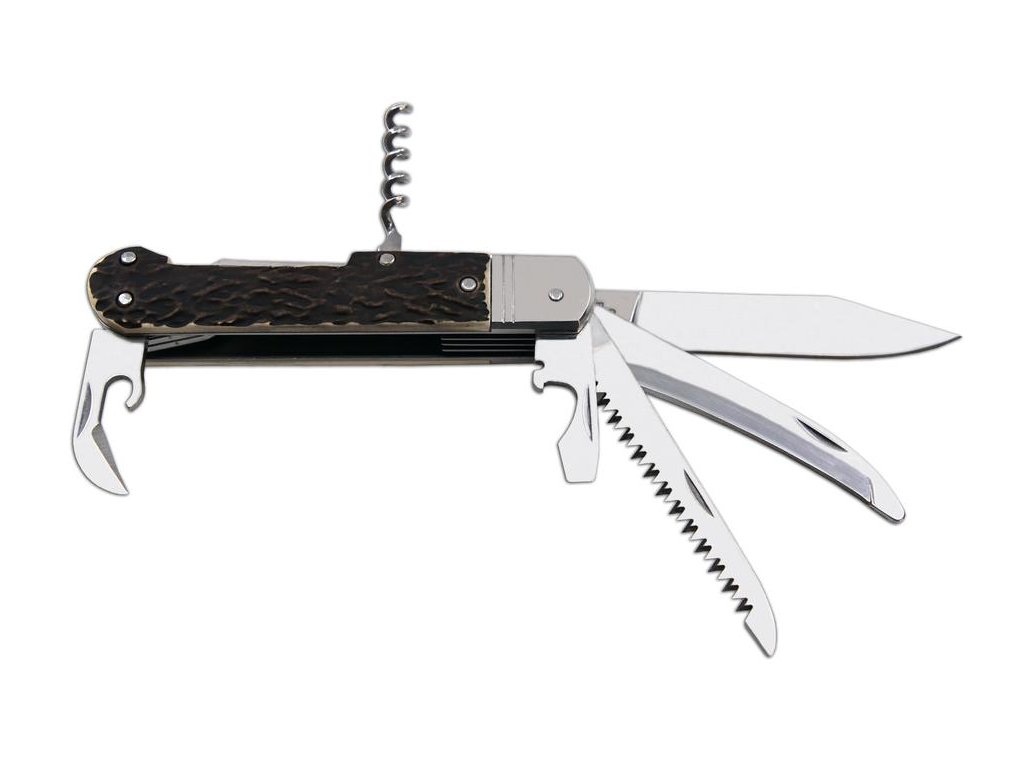 VYBAVENÍ: Lovecký nůž FIXIR je vybaven čepelí z velmi kvalitní nerezové oceli 440A o tvrdosti 54-57 HRc. Čepel loveckého nože FIXIR má kónický výbrus, což umožňuje nejen lepší řezivost, ale i údržbu. Tento typ loveckého nože FIXIR je také vybaven kvalitní pilkou s dvěma řadami zubů. Dále je tento lovecký nůž FIXIR vybaven vývrtkou, páráčkem, otvírákem na konzervy a otvírákem na láhve, který lze použít i jako plochý šroubovák či k odstraňování izolace. Lovecký nůž FIXIR je vybaven hřbetní pojistkou backlock, pro větší bezpečnost při práci s nožem. Střenky loveckého zavíracího nože FIXIR jsou vyrobeny z velmi kvalitní imitace parohu.
