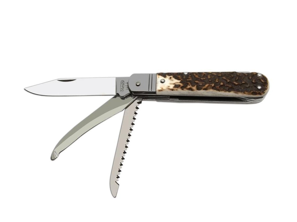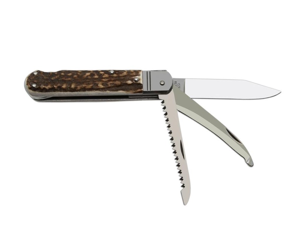 | Popis EN: | Folding hunting knife FIXIR 232-XP-3 / KP <br> Traditional folding hunting knife FIXIR 232-XP-3 / KP is a great hunting knife for every hunter. <br> EQUIPMENT: <br> Hunting knife FIXIR is equipped with a blade of high quality stainless steel 440A with a hardness of 56HRc. The blade of the hunting knife FIXIR has a conical cut, which allows not only better cutting, but also maintenance. This type of hunting knife FIXIR is also equipped with a quality saw with two rows of teeth and down blade. Hunting knife FIXIR is equipped with a backlock for greater safety when working with the knife. Handles of FIXIR hunting folding knife are made of real deer antler. Hunting knife FIXIR is supplied with a leather case with the Mikov logo and is packed to a gift box.<br> Hunting folding knife FIXIR is a traditional product of Mikov company, which is located in Bohemian Switzerland. |