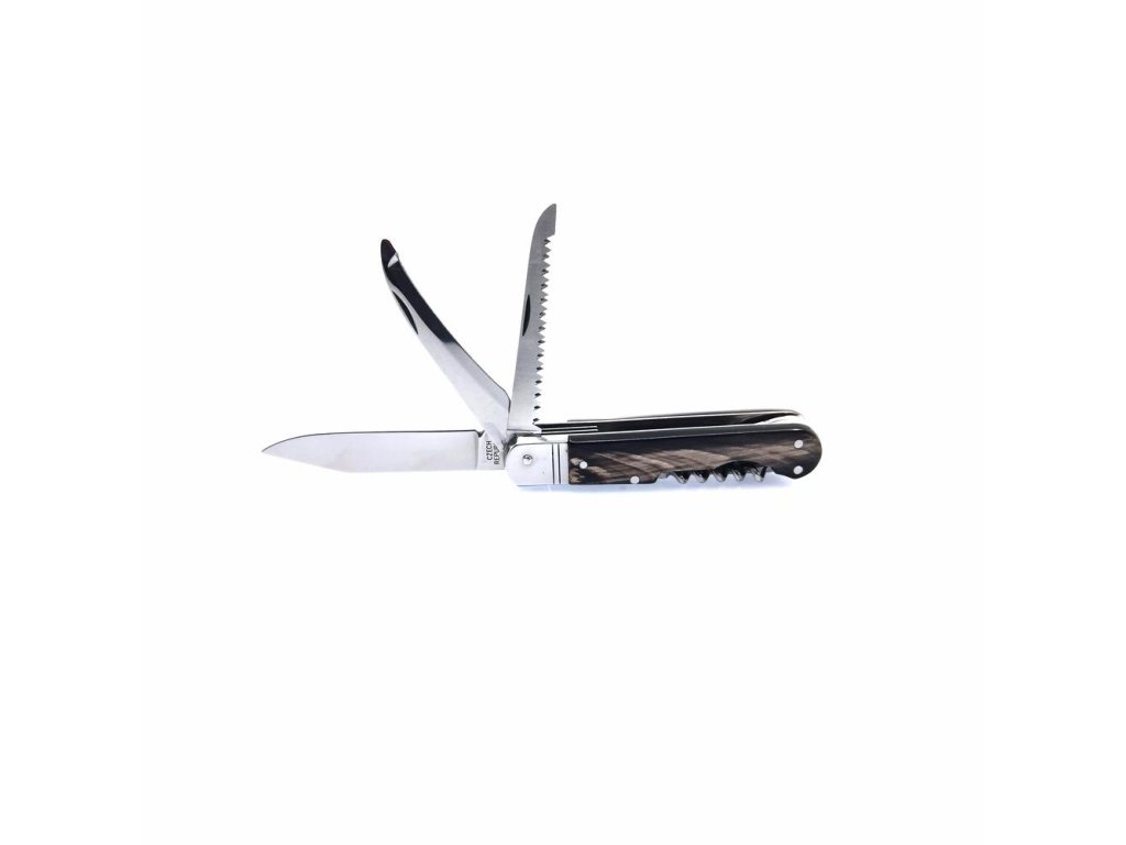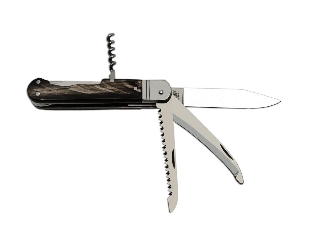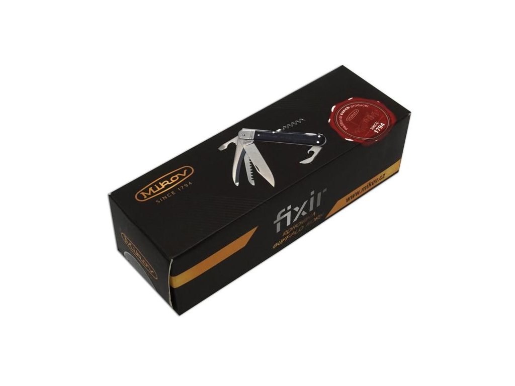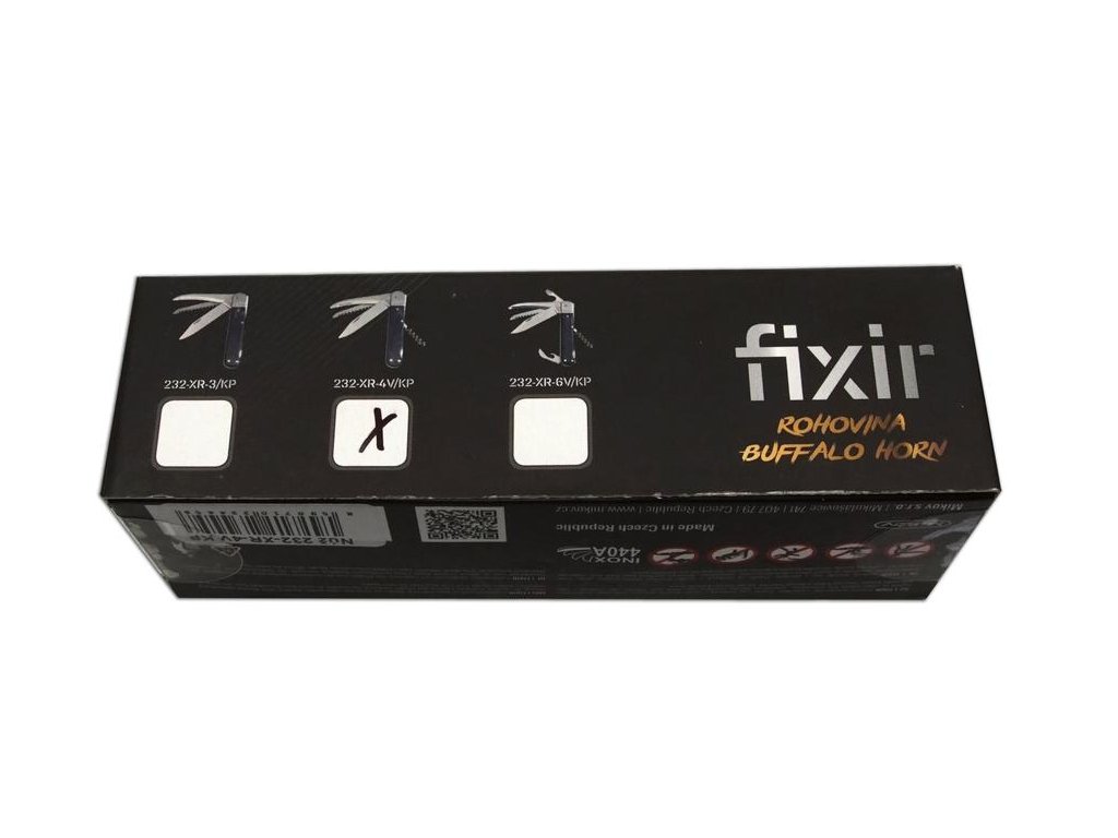 | Popis EN: | Folding hunting knife FIXIR 232-XR-4V / KP <br> Traditional folding hunting knife FIXIR 232-XR-4V / KP is a great hunting knife for every hunter. <br> EQUIPMENT: <br> Hunting knife FIXIR is equipped with a blade of high quality stainless steel 440A with a hardness of 56HRc. The blade of the hunting knife FIXIR has a conical cut, which allows not only better cutting, but also maintenance. This type of hunting knife FIXIR is also equipped with a quality saw with two rows of teeth, down blade and a corkscrew. Hunting knife FIXIR is equipped with a backlock for greater safety when working with the knife. Handles of FIXIR hunting folding knife are made of high quality Buffalo horn. Hunting knife FIXIR is supplied with a leather case with the Mikov logo and is packed to a gift box.<br> Hunting folding knife FIXIR is a traditional product of Mikov company, which is located in Bohemian Switzerland. |