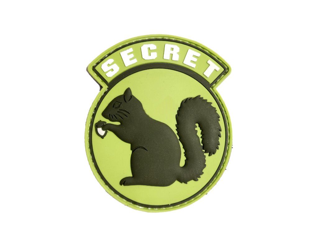 Nášivka Secret Squirrel je nášivka z pružného PVC s obrázkem tajemné veverky. Tato nášivka má humorný charakter a často se používá jako identifikátor osob pracujících v tajných nebo speciálních jednotkách. Rozměry v MM 70x80.