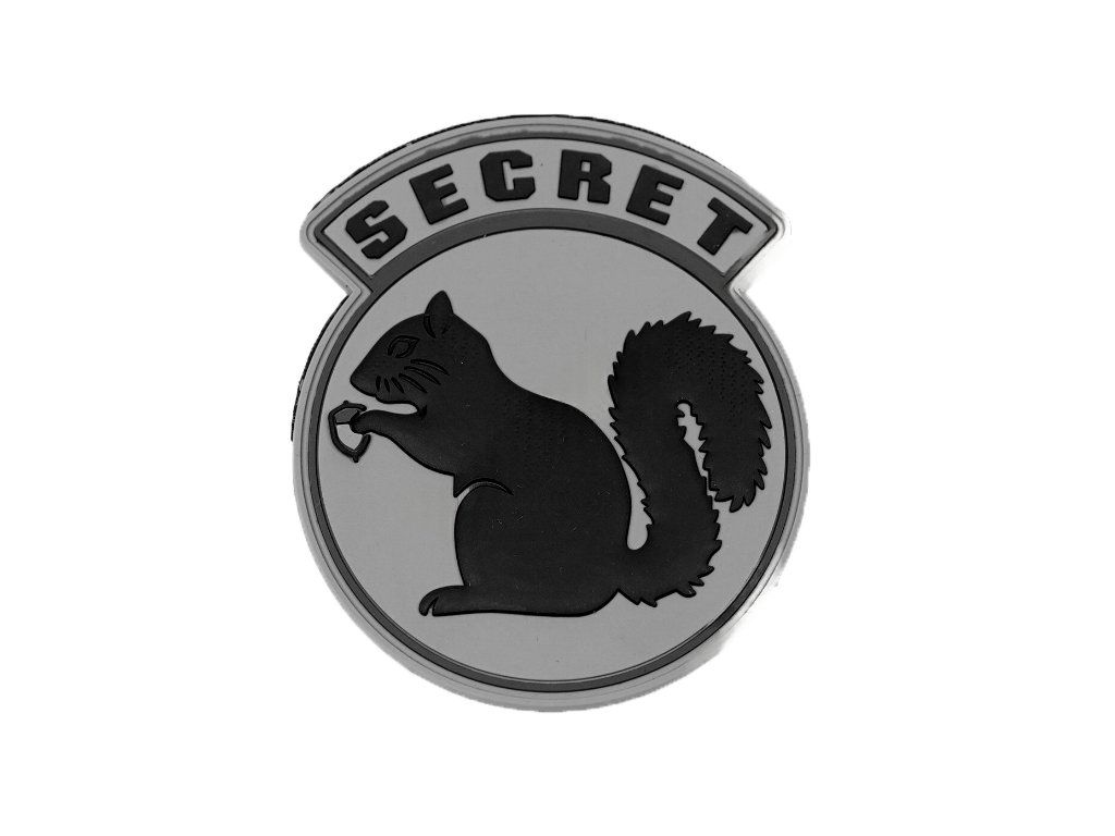 Nášivka Secret Squirrel je nášivka z pružného PVC s obrázkem tajemné veverky. Tato nášivka má humorný charakter a často se používá jako identifikátor osob pracujících v tajných nebo speciálních jednotkách. Rozměry v MM 70x80.