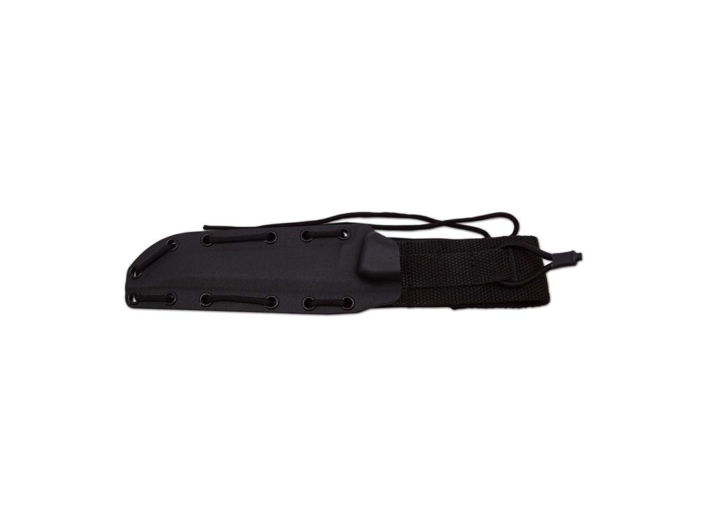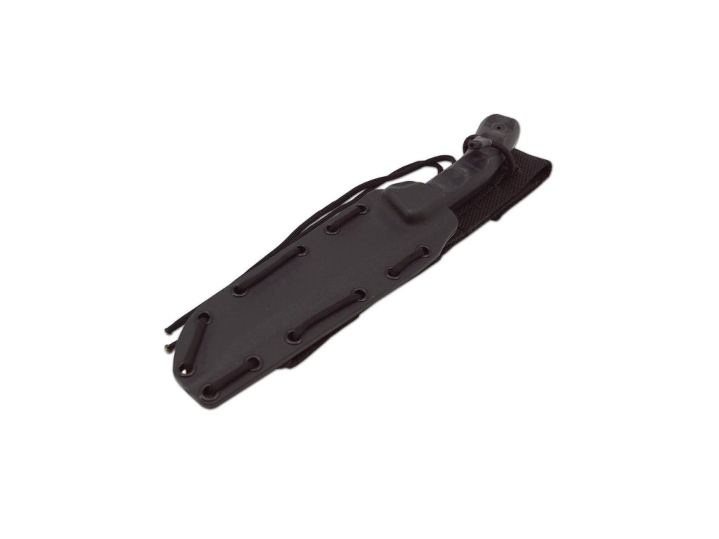 Bojový nůž FLASH má "full tang" konstrukci s čepelí s vyvýšeným hrotem a povrchovou úpravou Cerakote. Jeho ergonomické střenky jsou z materiálu Canvas Micarta a pochva z materiálu kydex v černém provední.