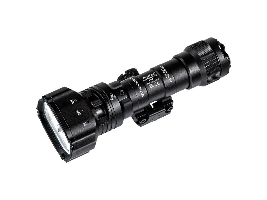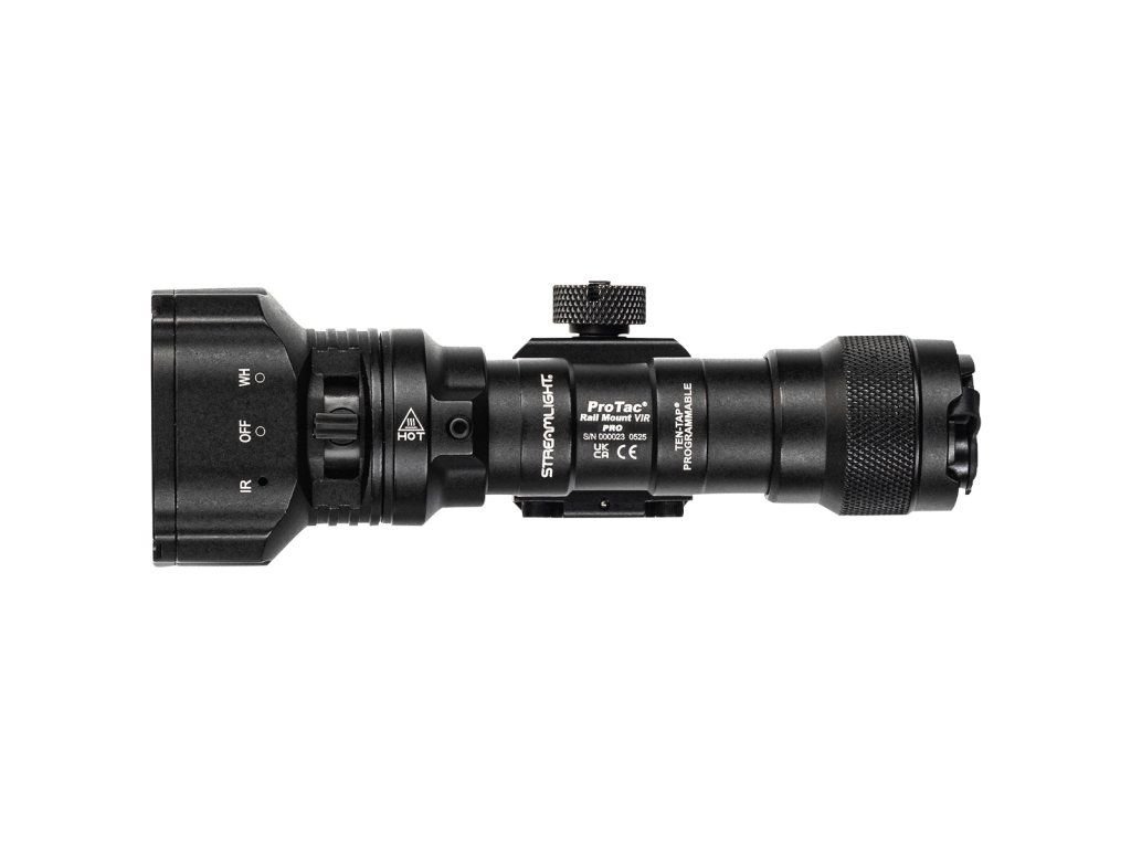 PROTAC RAIL MOUNT VIR PRO je první pušková svítilna od společnosti Streamlight s infračerveným přísvitem. Výkon svítilny: 1 100 lumenů. Intenzita svitu: 40 000 candela Dosvit: 400 metrů Výkon IR přísvitu: 2 300 mWh Vlnová délka IR přísvitu: 940nm Přepínání jednotlivých režimů: Pusuvná páčka na hlavě svítilny Možnost uzamčení svítilny: Ano To jsou hlavní přednosti nové svítilny určené pro dlouhé zbraně. Napájení svítilny již zajišťuje nabíjecí akumulátor velikosti 18650 a kapacitě 2 600mAh s nabíjením přes USB-C port nacházející se přímo v těle akumulátoru (součástí balení). Svítilna si zachovala možnost duálního napájení a můžete použít i 2 x CR123 jednorázové baterie. PROTAC RAIL MOUNT VIR PRO je opatřen duálním patním víkem s otvorem na kabelový dálkový spínač. Patní víko je opatřeno i tlačítkem ovládání svítilny bez nutnosti použití kabelového spínače. Standardem je perfektní optika, která vytváří koncentrovaný paprsek světla s optimálním periférním svícením. Svítilna je vybavena integrovanou montáží na picatinna rail (MIL-STD1913) a montáží na M-LOK. VIR PRO nabízí 3 režimy svitu bílého světla (Vysoký, Střední, Nízký) IR přísvit má dva režimy svitu (Vysoký a Nízký). Je určena pro střední a dlouhé zbraně. Díky použitým materiálům bezpečně odolává zpětným rázům. Světelný výkon lze otestovat na virtuální střelnici zde.
