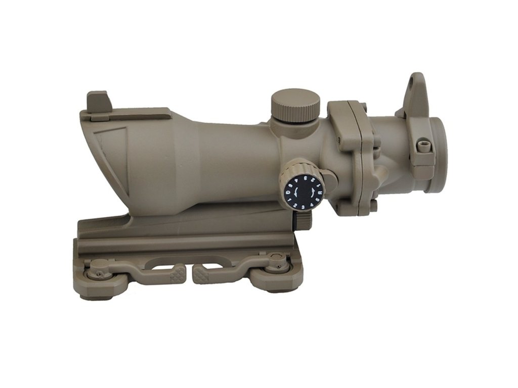 Puškohled ACOG 4×32 s QD montáží a červeným/zeleným zaměřovacím křížem od výrobce Aim-O. Kompatibilní s 20mm lištou RIS.