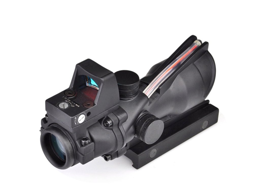 Puškohled ACOG 4X32C Red Dot se zdrojem světlovodného vlákna a zaměřovačem RMR od výrobce Aim-O. Kompatibilní s 20mm lištou RIS.