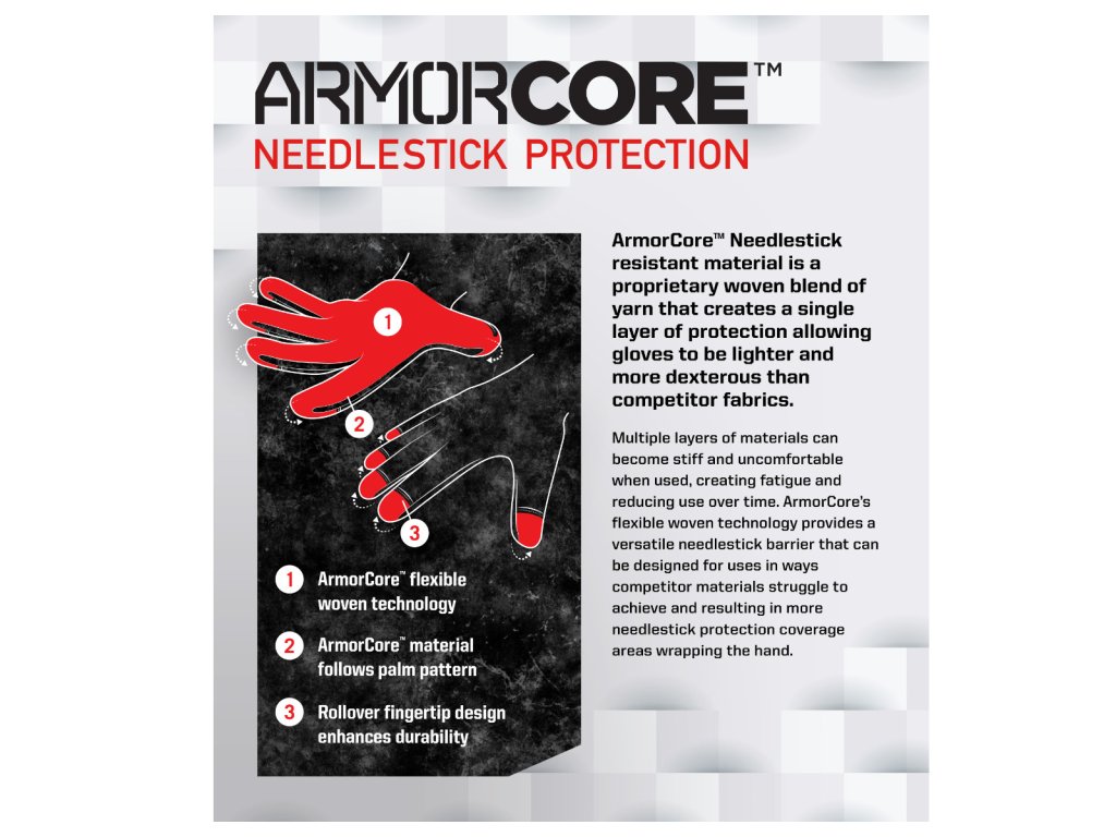 Začlenili jsme kůži Durahide&trade FR Goat Skin, technologii ArmorCore&trade odolnou proti vpichům a 360°, střižnou vložku, která zajišťuje nezbytnou ochranu před píchnutím jehlou, řezy a propíchnutí, stejně jako za tepla vyražené překryvy úchopu na prstech a dlani pro lepší odolnost, přilnavost a pohodlí při práci.