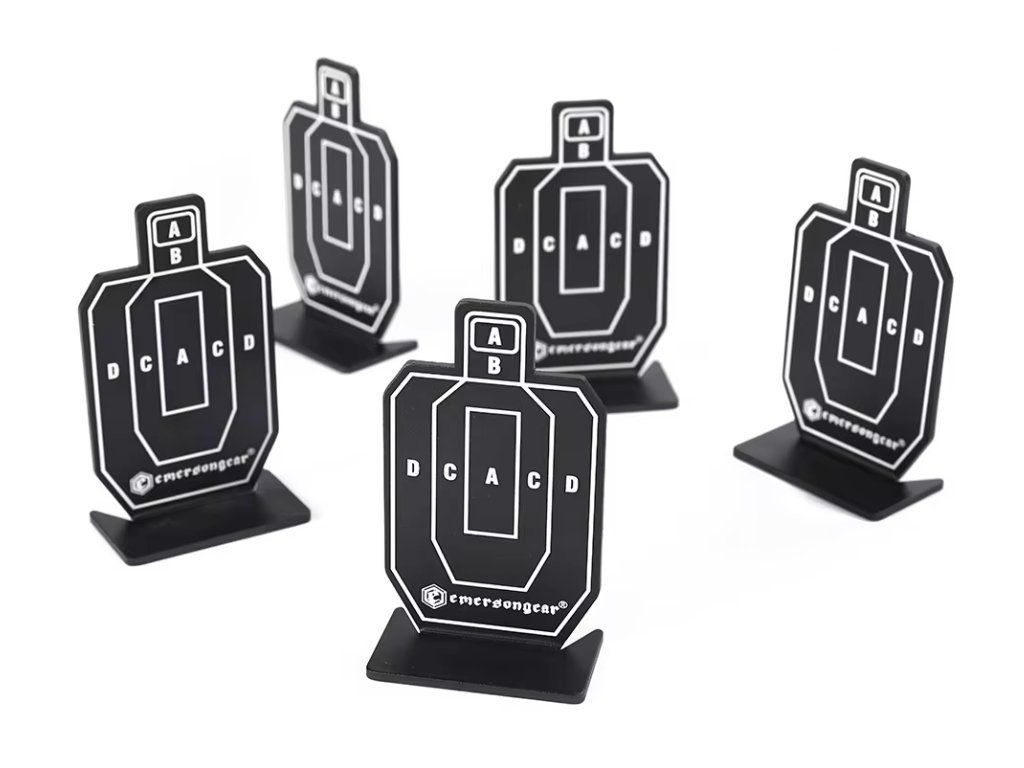 Sada 5 tréninkových terčů "IDPA Mini" od společnosti Emerson. Ideální malé terče pro nácvik přesné střelby z airsoftových zbraní. Terče jsou vyrobeny z kovu, díky čemuž dlouho vydrží.
