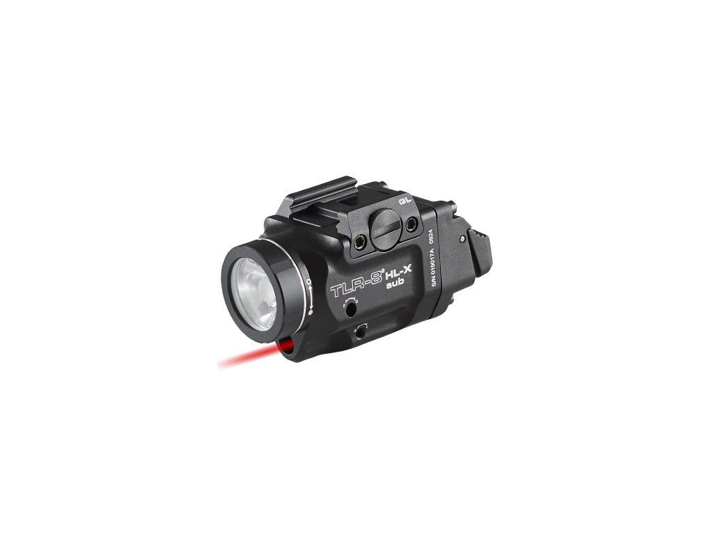 Podvěsná pistolová svítilna s laserem z produktové řady TLR pro zbraně velikosti compakt a slimline. Tuto podvěsnou pistolovou svítilnu si můžete pořídit jak s červeným laserem (TLR-8 HL-X SUB) tak se zeleným laserem (TLR-8 HL-X G sub). Nově se svítilna napájí nabíjecím aku. SL-B9, ten generuje světelný tok svítilny 1 000 lumenů s intenzitou světelného až 10 000 kandela s dosvitem 200 metrů. Svítilna funguje i na 1 x CR123A se světelným tokem 500 lumenů, intenzitou 5 000 kancela a dosvitem 141 metrů. Napájena je jedním nabíjecím li-ion akumulátorem od Streamlightu s kódovým označením SL-B9. Kapacita aku. je 850mAh s nabíjením přes USB-C port nacházející se u kladného pólu. Na akumulátoru se necházejí dvě diody červená - nabíjí se. Zelená označuje plně nabitý aku. Doba nabíjení aku. je 2,5 hodiny a doba provozu svítilny je 30 minut. S jednorázovou CR123A baterií vydrží svítilna v provozu až 1,5 hodiny. Nízkoprofilový design zabraňuje možnosti zachycení při manipulaci. Speciální pojistka znemožní náhodné nechtěné aktivaci a šetří baterie. Svítilna je zkonsturována z odolné slitiny leteckého hliníku, voděodolné dle normy IPX4. Díky precizní optice vytváří úzký paprsek světla s optimálním periferním osvětlením. Díky speciálnímu mechanismu pro uchycení na lištu lze jednoduše připojit nebo odpojit bez nutnosti používat jakékoliv nářadí nebo nebo manipulovat s rukama před hlavní.