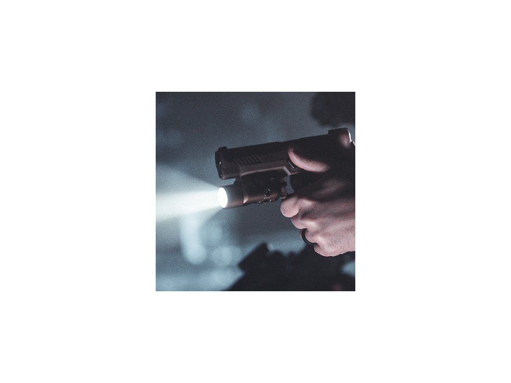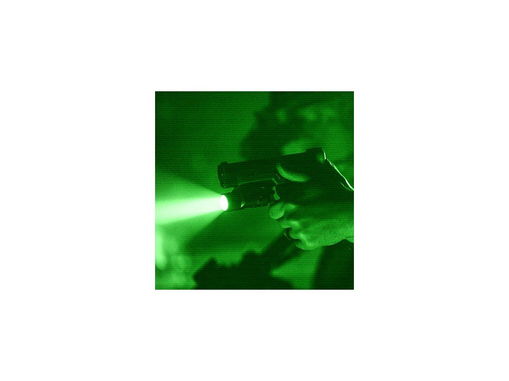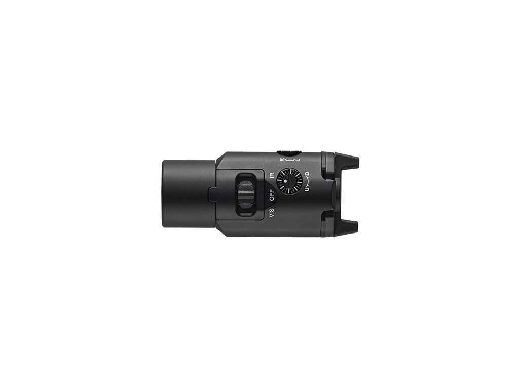 TLR-VIR II PISTOL je taktická podvěsná LED svítilna s integrovanou montáží na picatinna lištu MIL-STD-1913. Kombinuje světlo o síle 300 lumenů, infračervený přísvit o vlnové délce 850nm LED a výkonu minimálně 600 mW, dále IR laserem o vlnové délce 850 nm třídy 1 (bezpečné pro oči). Podvěsná svítilna vhodná pro krátké zbraně je odolná vůči zpětným rázům a celkově mechanicky velmi odolná. Výkonná LED dioda C4 dává světelný výkon 300 lumenů a je napájena 1 ks baterie CR 123A (součástí balení), která vydrží svítit 1,5 hodiny nepřetržitě. Doba provozu na IR přísvit a IR laser je 12 hodin. IR laser se dá nastřelit jak výškově, tak i stranově na požadovanou vzdálenost. Ke korekci slouží otočná kolečka na straně těla svítilny a ve spodní části svítilny. Dále se ve spodní části svítilny nachází přepínač jak světla ve viditelném spektru, tak možnost vypnutí svítilny OFF a přepnutí na režim IR přísvitu v kombinaci s IR laserem. Součástí dodávky je: Baterie 1 x CR123, výměnné adaptáry pro uchycení na Glock, Picatinny lištu, Bereta 90 Two, S&W 99 a S&W TSW. Světelný výkon lze otestovat na virtuální střelnici zde.