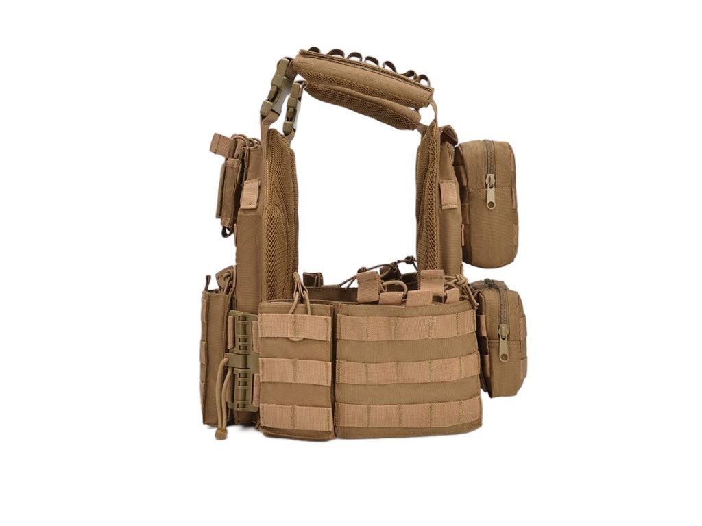 Vestu lze snadno přizpůsobit díky nastavitelným ramenním popruhům a systému regulace obvodu. Díky rychloupínacímu systému umožňuje okamžité odhození vesty nebo vyjmutí plátů, což oceníte v dynamických situacích. Na povrchu se nachází MOLLE vazba, která umožňuje doplnění o sumky, lékárničku, radiostanici nebo další vybavení. Spolehlivé uchycení plátů, odolné provedení a vysoká variabilita činí tuto vestu skvělou volbou pro airsoftové hráče, profesionální trénink i outdoorové aktivity.