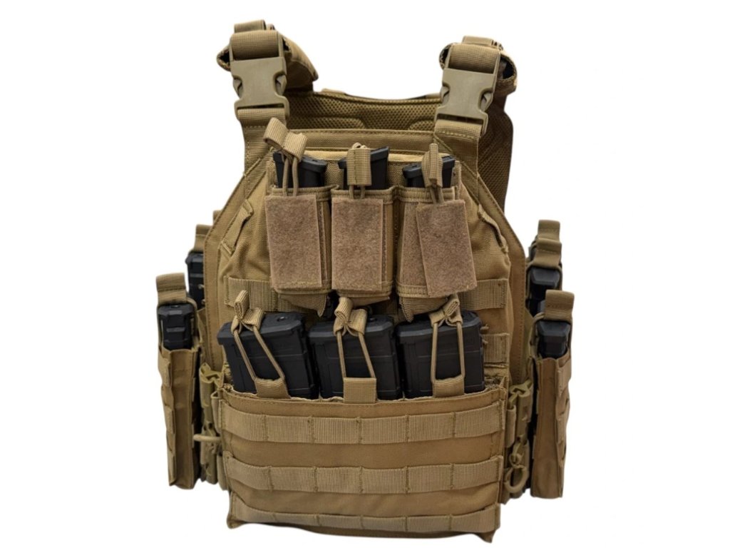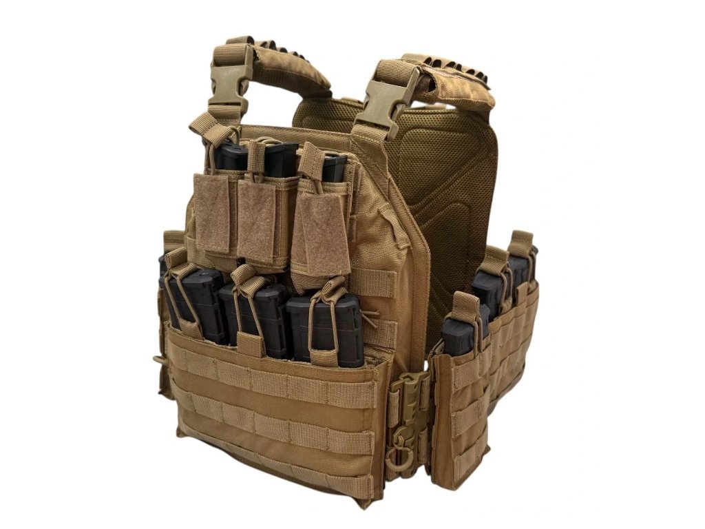 Vestu lze snadno přizpůsobit díky nastavitelným ramenním popruhům a systému regulace obvodu. Díky rychloupínacímu systému umožňuje okamžité odhození vesty nebo vyjmutí plátů, což oceníte v dynamických situacích. Na povrchu se nachází MOLLE vazba, která umožňuje doplnění o sumky, lékárničku, radiostanici nebo další vybavení. Spolehlivé uchycení plátů, odolné provedení a vysoká variabilita činí tuto vestu skvělou volbou pro airsoftové hráče, profesionální trénink i outdoorové aktivity.