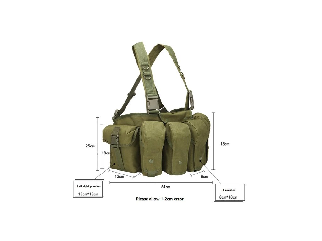 Tento typický chest rig, jehož výhodou je nízká hmotnost a dobrá ventilace trupu uživatele, je vybaven měkkými ramenními vycpávkami a plně nastavitelnými šlemi, které umožňují přizpůsobit vestu individuálním potřebám uživatele. Vesta je ideální volbou pro hráče, kteří ocení kompromis mezi kapacitou a pohodlím při používání a snadným pohybem.