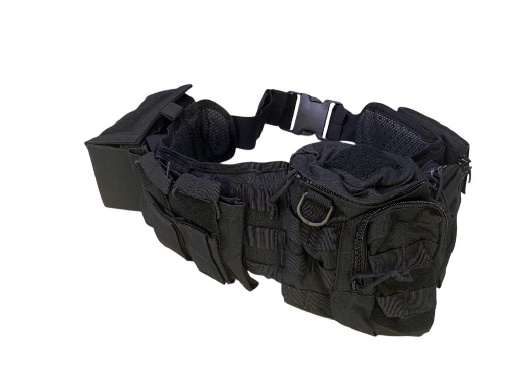 Opasek má polstrovanou vnitřní podšívku pro pohodlí, odolnou nylonovou konstrukci pro spolehlivost a plně nastavitelný obvod až do cca 148 cm. Popruh MOLLE po celém obvodu opasku umožňuje rozšíření, nicméně tato verze již obsahuje konfiguraci s plnou kapsou – to znamená, že není potřeba žádné další vybavení.